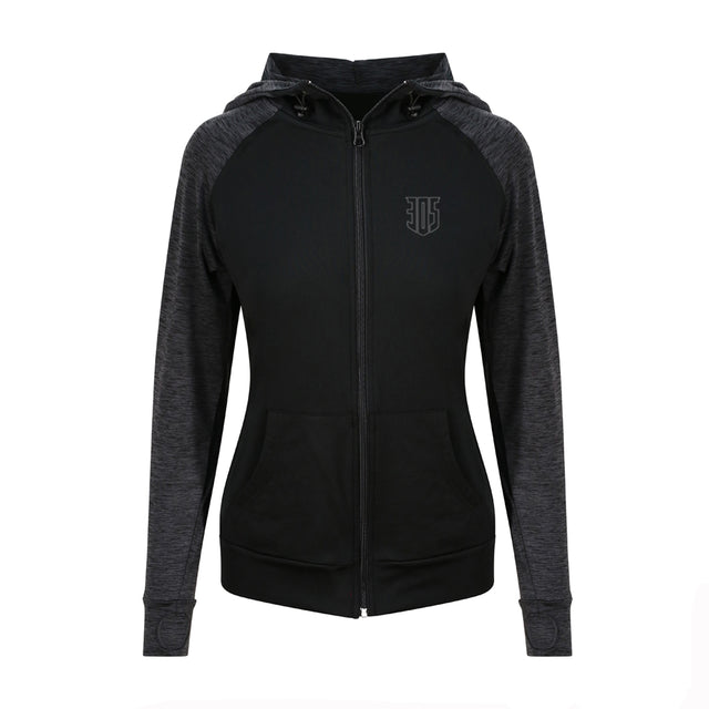 305 Shield Performance Lite Full Zip Womens Hoody - Black Melange / XS/8 is backordered and will ship as soon as it is back in stock.